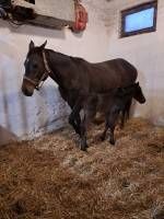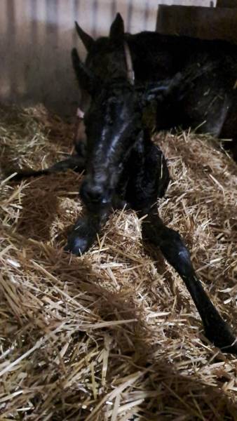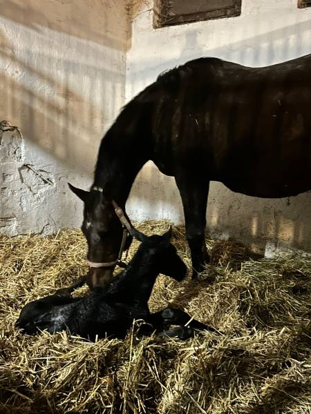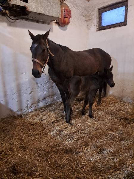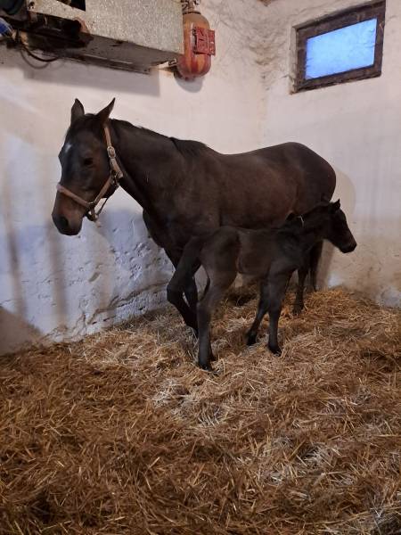 Tmavá hnědka bez odznaků se narodila spontálně klisně Sha High 21.2.2026 ve 20.30 minut. Otcem hříběte je Colorado Kid, Američan působící na Hájku.