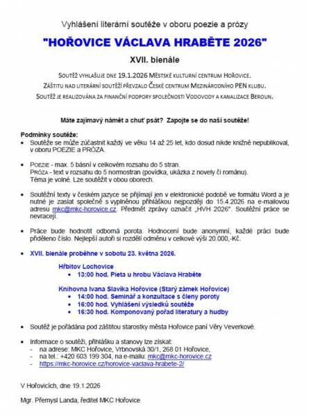 19.01.2026 - Vyhlášení literární soutěže „Hořovice Václava Hraběte 2026“